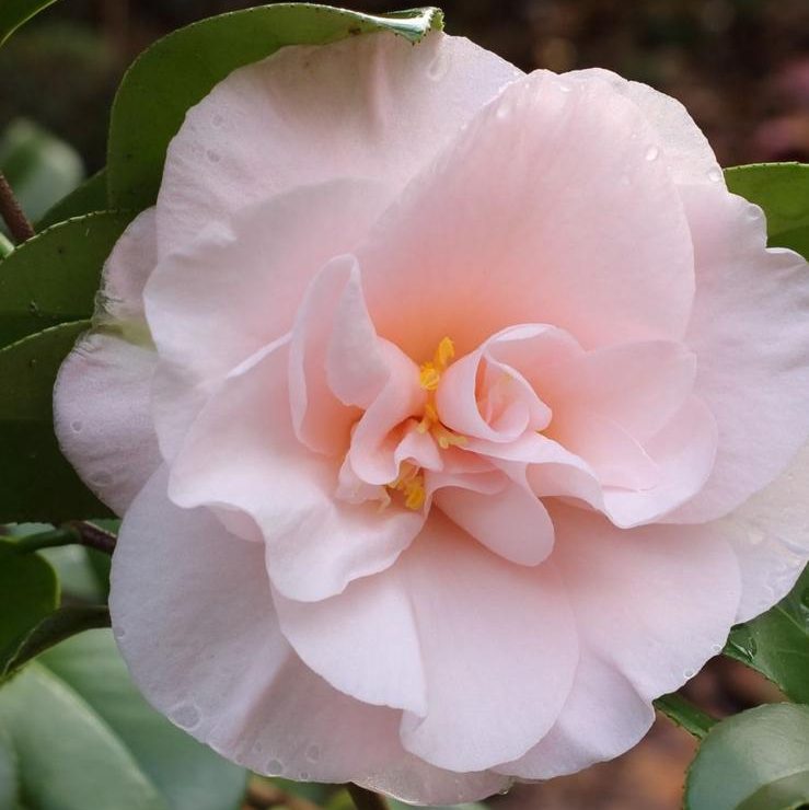 A flower of a Camellia Moonlight Bay.