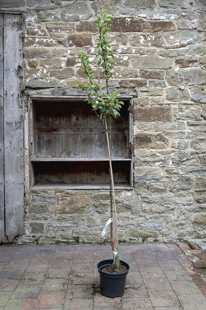 A very large apple that can be quite sweet and pleasant when eaten fresh but basically it is a cooking apple. However, we note that many visitors to this website disagree and think it is a good eating variety too! Partially self-fertile like one of its parents, Newton Wonder.