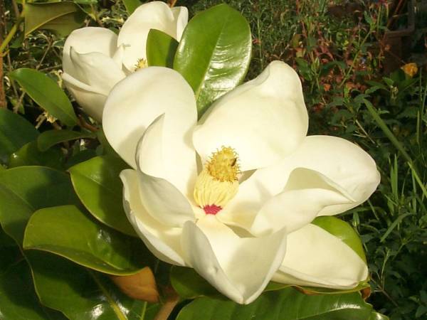 The Magnolia Grandiflora is a beautiful evergreen tree with large boat-like bright green glossy leaves. Huge exquisite creamy white flowers with a wonderful lemon scent bloom from midsummer to mid-autumn. A most magnificent and rewarding tree. This dwarf Magnolia likes sun or semi-shade and prefers neutral to acid well-drained soil.