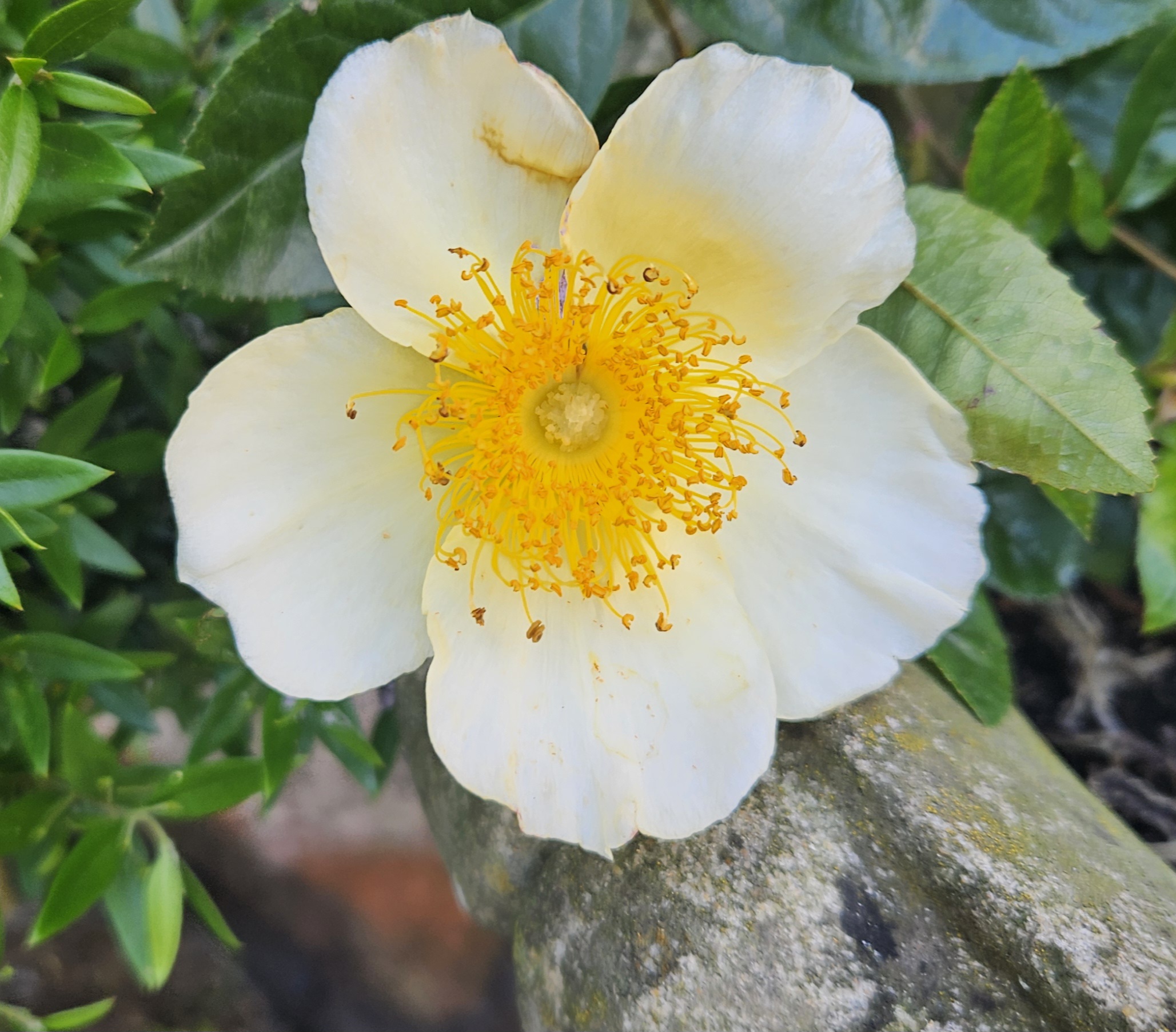 The Mermaid rose is happy in most well-drained soils and although it likes the sun, it can be grown successfully on a sheltered north wall. This climbing rose can reach a height and spread of about 6m x 6m. It provides nectar and pollen for bees and other pollinating insects. It resents pruning so do nothing except prevent it from going where it shouldn’t.